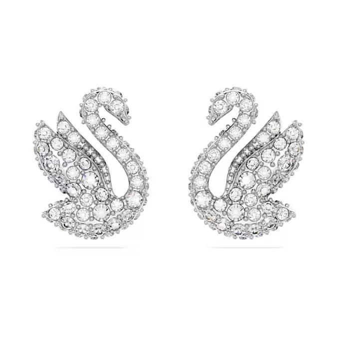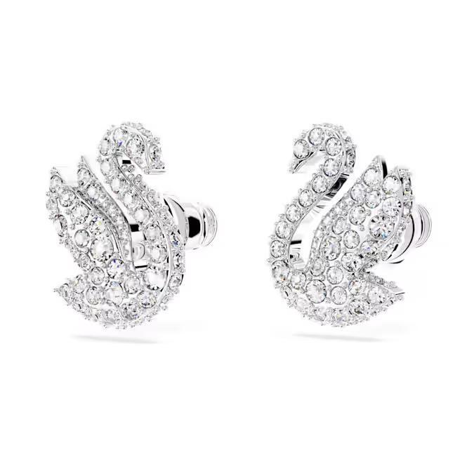 L’iconico Cigno Swarovski prende forma elegantemente in questo paio di orecchini a lobo.