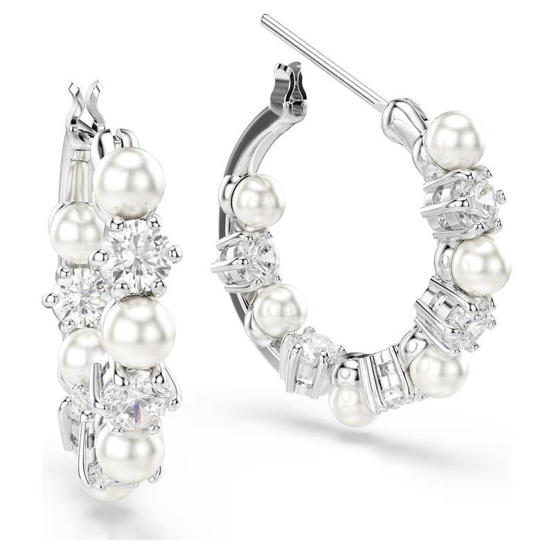 Crystal pearl, taglio round, bianchi, placcato rodio