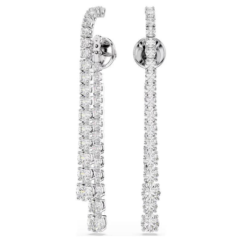 orecchino a buco placcato rodio presenta due fili di Swarovski Zirconia, proposte in una tonalità