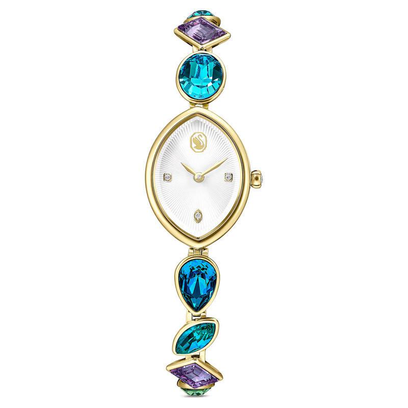 Con la sua attraente collisione di forme, l’orologio Swarovski è ispirato alla famiglia di gioielli