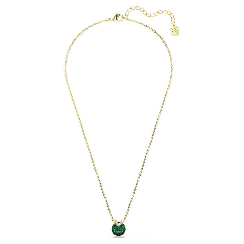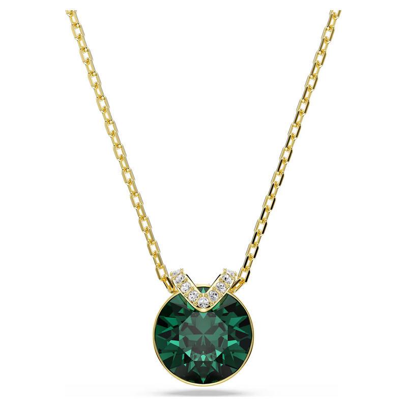 Questo affascinante pendente a V ha un fascino accattivante grazie al suo cristallo verde centrale