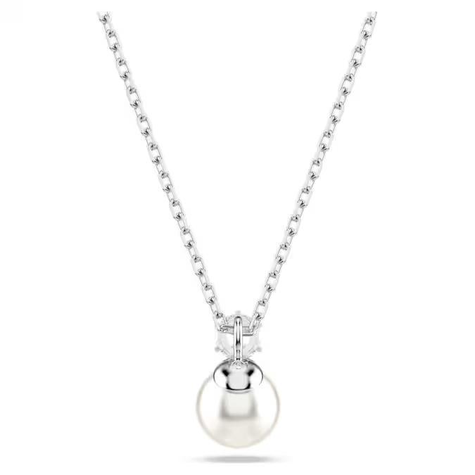un’elegante catena, il gioiello placcato rodio presenta un’unica Crystal Pearl Swarovski bianca e una