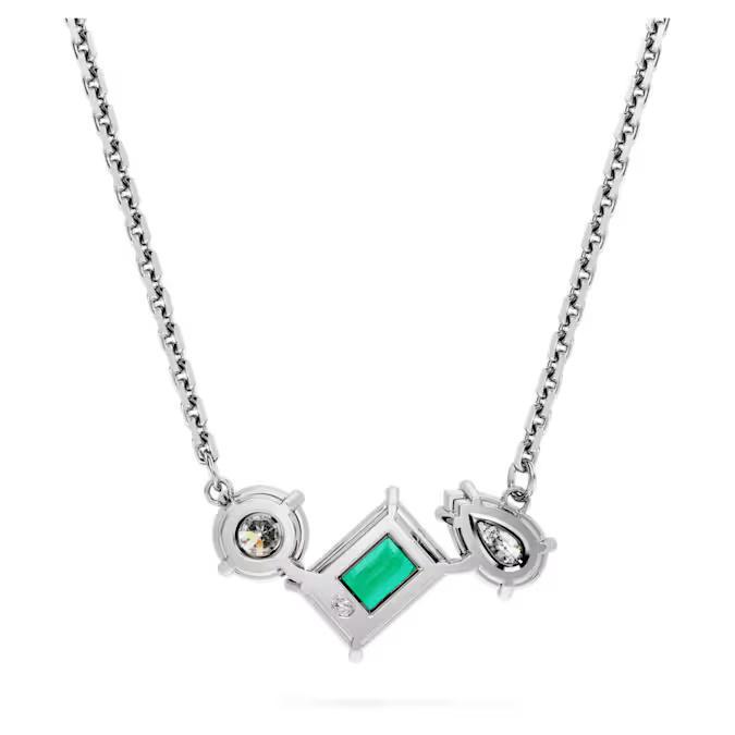 tagli e colori. Montato su una delicata catena, questo design placcato rodio presenta un trio di