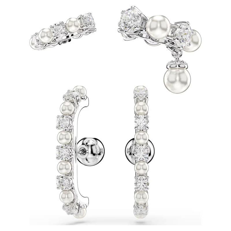 Set (3), crystal pearl, taglio round, bianco, placcato rodio