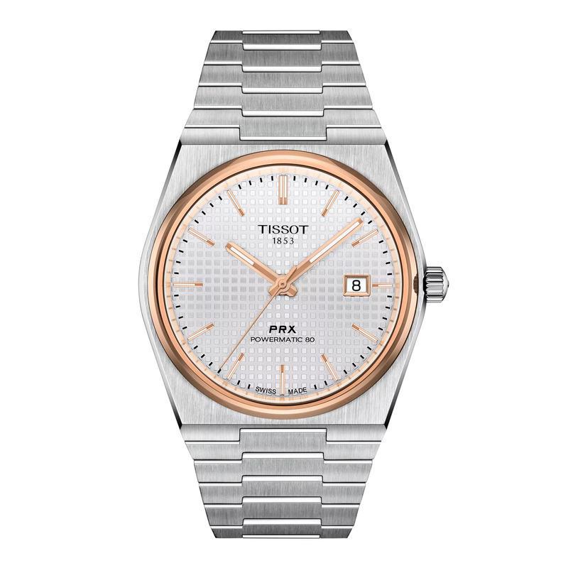 una lunetta liscia, sottile e rotonda. Il movimento del Prx automatico è un Tissot Powermatic 80 che