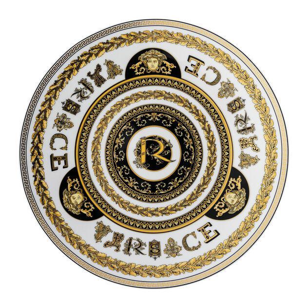 Versace virtus alphabet R piatto presentazione – rotondo – ,1 cm – h 3,2 cm